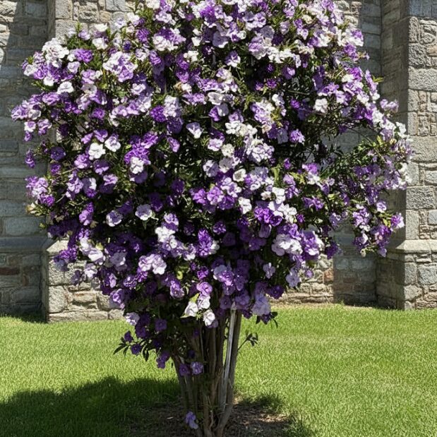 Brunfelsia pauciflora (Yesterday-Today-and-Tomorrow) is a beautiful flowering shrub known for its unique blooms that change colour from deep purple to lavender and then white over a few days. It produces a lovely, sweet fragrance and makes an excellent feature plant for gardens or large containers.