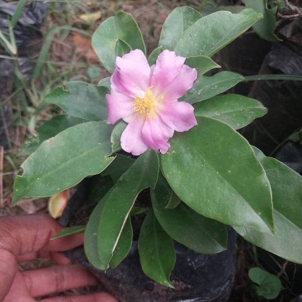 Rhodocactus grandifolius/syn. Pereskia grandifolia (Rose cactus) is a unique shrubby cactus valued for its edible leaves and fruits, medicinal properties, and ornamental use. The large, green, nutrient-rich leaves are high in protein, vitamins, and minerals and can be eaten raw or cooked, while the small, tart fruits are rich in vitamin C and used fresh or in preserves. Traditionally, the plant is used for inflammation and wound healing. It is very popular in gardens for its fragrant, rose-like flowers, as a fast-growing hedge, and it thrives in containers. It is very hardy, drought-tolerant, and adaptable to both sun and partial shade.