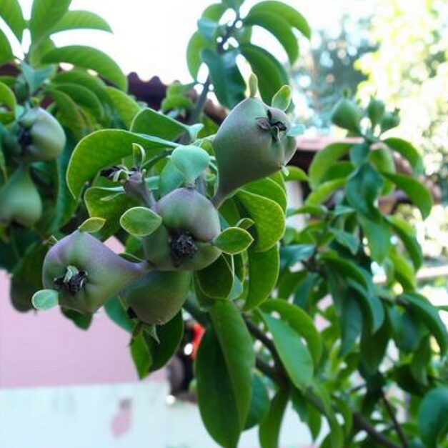 Edible Fruits: The plant produces small, rounded, pear-shaped berries that turn from yellow to orange/red when ripe. They have a tart, sour flavor similar to gooseberry or citrus, and are used for making jams, jellies, compotes, or eaten raw.